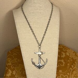 SILVER ANCHOR NECKLACE RETRO NAUTICAL PINUP WOMENS PENDANT