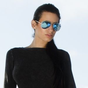 SILVER AVIATORS MIRRORED SUNGLASSES BLUE LENS