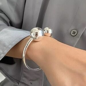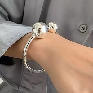 Silver big ball small ball bangle bracelet flexible to fit every size.