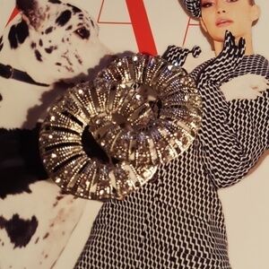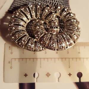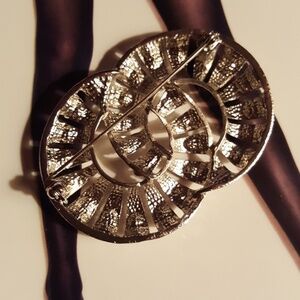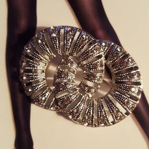 SILVER BROOCHE double loop with stones. Perfect for scarfs, hats endless possibilities. Approximately little over 2" long. Gantly used but in great condition.📿💍👒👗<002>