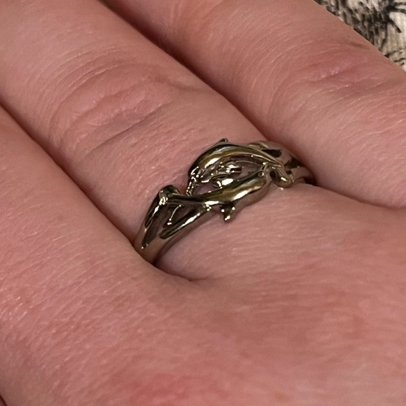 SILVER COLORED DOLPHIN RING.