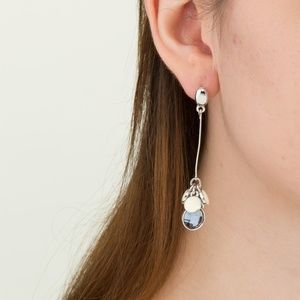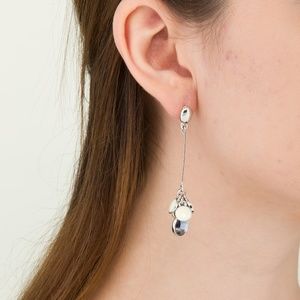 SILVER CREAMY GEM CHARM DANGLE EARRINGS