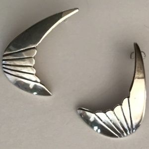 SILVER CURVED AND SCORED PIERCED EARRINGS