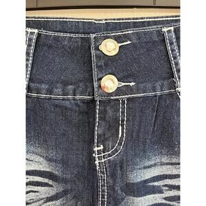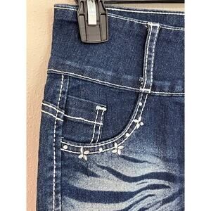 SILVER DIVA Micro Mini Jean Skirt Junior 5 Rhinestones Distressed Low Rise NWT