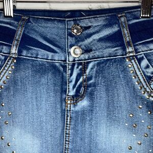 SILVER DIVA Stone Washed Jean Skirt with Rhinestones frayed hem new with tags (51a)