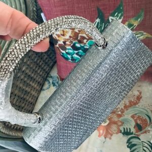SILVER Evening Bag 🩷 BELOW WHOLESALE JEWELED HANDLE W/CHAIN NWOT HANDBAG