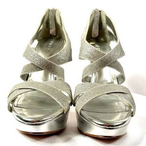 SILVER GLITTER PLATFORM SANDALS by ALDO 5” HEEL 8