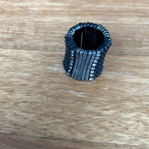 SILVER GUNMETAL-BLACK-RHINESTONE STRETCHY RING