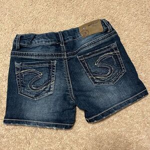 SILVER Girls Triple 5 Dark Wash Lacy Jean Shorts
