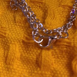 This .925 silver chain and half moon bluish pendant is 18" long