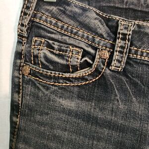 Elevate your denim game with these Silver Jeans Suki fluid mid boot cut jeans. The denim fabric and embroidered accents make these jeans a statement piece for any outfit. The 5-pocket design and mid-rise fit provide both style and comfort, while the zip and button closure ensures a secure fit. Available in a beautiful medium wash and size W29/L33, these jeans are perfect for any season. The fabric is made of a blend of polyester, spandex, viscose, and cotton, providing a stretchy and comfortable wear. Get ready to rock these trendy boots cut style jeans that are perfect for any occasion.