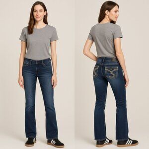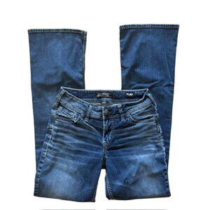 SILVER JEANS CO✨ Suki Mid-Rise Bootcut Jeans 👖 Embroidered Flap Pockets Sz 28