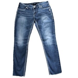 ππΈ SILVER JEANS Co. Suki High Rise Super Skinny Jeans | Distressed Raw Hem Sz 30