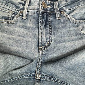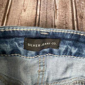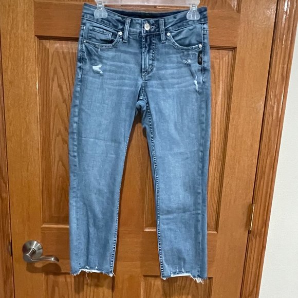 SILVER JEANS SUKI CAPRI Women's W 27 L 23.5 Blue Denim Jeans Capri Thick Stitch