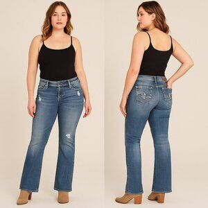 Premium designer denim with signature Silver style! These Suki Bootcut jeans feature a flattering mid-rise fit, embroidered flap back pockets, and intentional fading/distressing for that perfectly broken-in look.