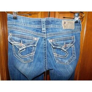 SILVER SUKI SURPLUS WOMENS DISTRESSED BOOT CUT JEANS SIZE 28.