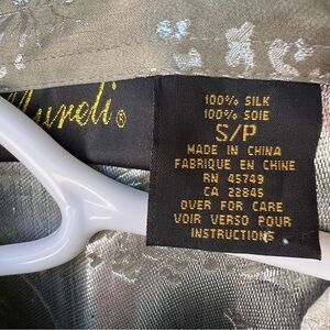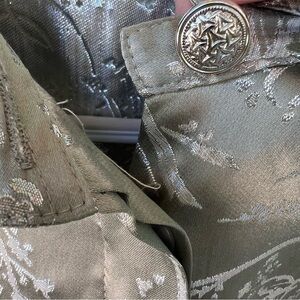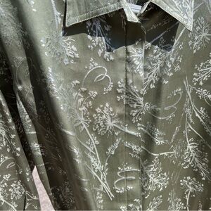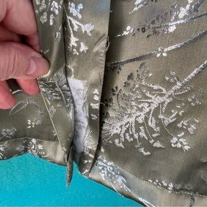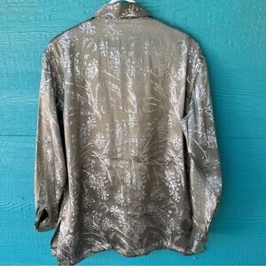 SILVER Lamé SILK OLIVE GREEN BUTTON DOWN OVERSIZED WHIMSIGOTH BLOUSE SMALL NEW