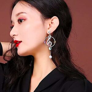 SILVER MUSIC NOTE RHINESTONE PEARL EARRINGS