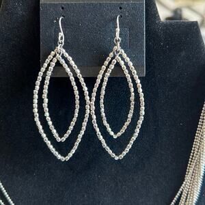 SILVER Necklace multi layers with dangly silver earrings, stylish and trendy