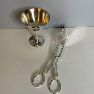 SILVER PLATED CHALICE/GOBLET AND SERVING TONGS