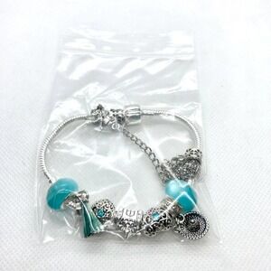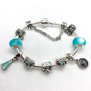 SILVER Plated Blue Elsa Disney Snake Style Charm Bracelet