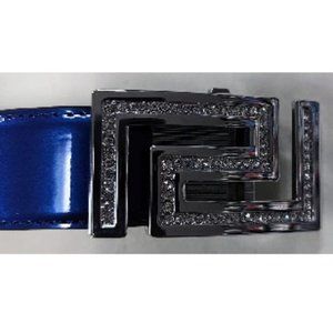 NEW! SILVER RHINESTONE GREEK DESIGN ROYAL BLUE STRAP AUTOMATIC BELT - MEN