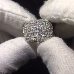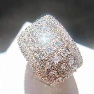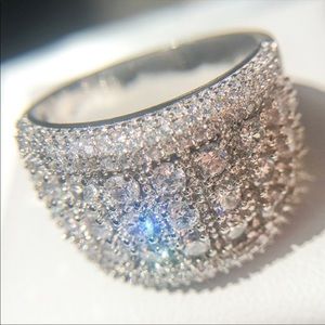 SILVER ROUND DIAMOND PAVE WIDE BAND RING