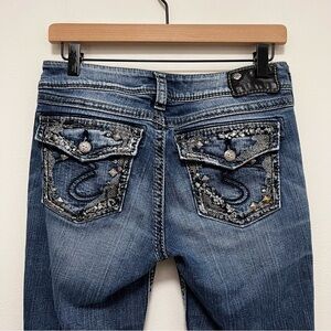 SILVER SUKI Y2K Low Rise Flap Pocket Bootcut Jeans Embellished Pocket Size 28x33