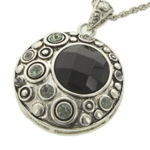 Silver Tone / Black Acrylic / Metal / Clip-on (earrings) / Pendant / Necklace & Earring Set