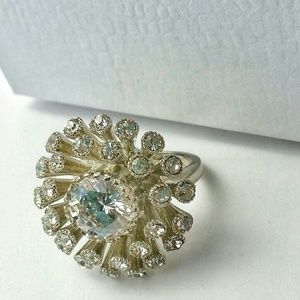 SILVER TONE SWAROVSKI CRYSTAL RING SIZE 8