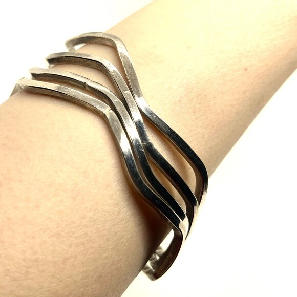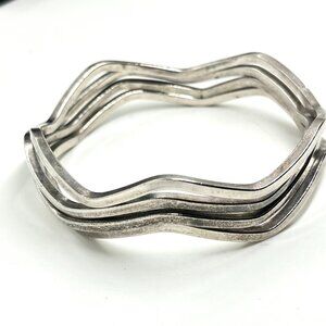SILVER TONE WAVY Wavy Stackable Bangle Cuff Bracelet Modernist Minimalist