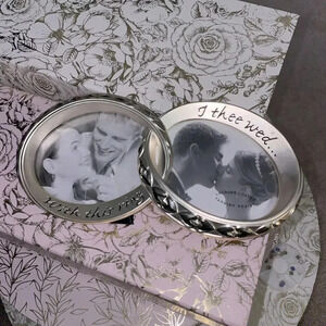 SILVER TONE DOUBLE INTERTWINED WEDDING RING PICTURE FRAME 7.5x3” PERFECT GIFT