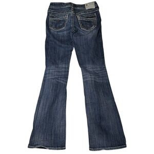 SILVER Womens Denim Jeans SZ 28x32 AIKO Bootcut Distressed Rivets Rhinestone LR