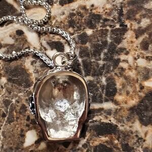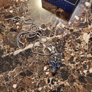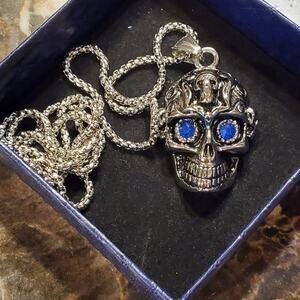 SILVER tone jewled eye‎ skull necklace