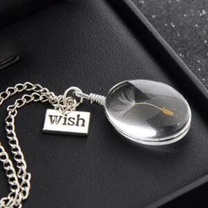 SILVER DANDELION NECKLACE WITH HANGING WISH CHARM