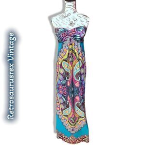 Silvergate Funky Floral Strapless Maxi Vacation Dress, Medium