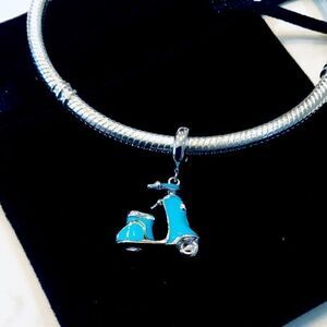 SILVER MOTORCYCLE CHARM TIFFANY COLOR FOR PANDORA BRACELET OR NECKLACE