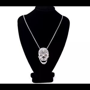 SILVER RHINESTONE STATEMENT SKULL NECKLACE BOHO