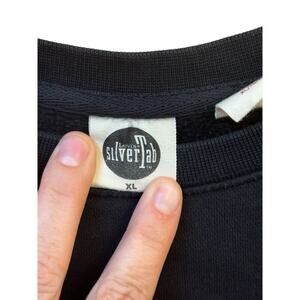This SILVERTAB Sweatshirt is a must-have for any 90s enthusiast. Made of comfortable cotton fleece, it features a solid black pattern with a crew neck and short sleeves. The sweatshirt is adorned with a stylish SilverTab logo accent and is available in size XL.