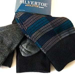 SILVERTOE GOLDTOE AQUAFX MOISTURE CONTROL DRESS SOCKS BLACK GRAY 3 PAIR SET NWT