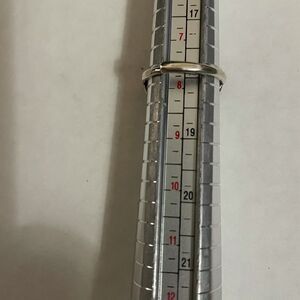 Silver color leaf ring is adjustable. As shown in picture, ring measures a size 7.5 without stretching.