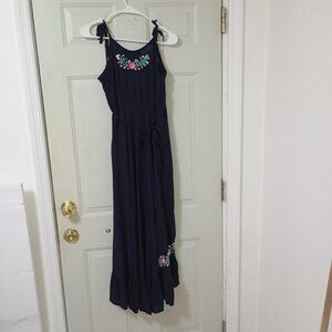 SILVIA SUAREZ Embroidered Wrap Dress With Adjustable Thin Straps, Blue, Size S