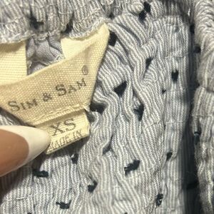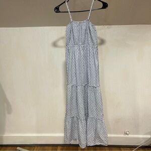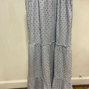SIM & SAM Blue Strapless Smocked Tiered CottonPolka Dot Poms Maxi Dress