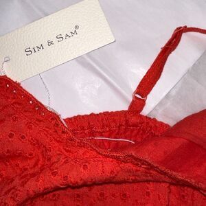 SIM & SAM RED NWT CROCHET TOP WITH ADJUSTABLE STRAPS IN SIZE MEDIUM CROP TOP OR HALTER DEPENDING ON YOUR BODY SHAPE