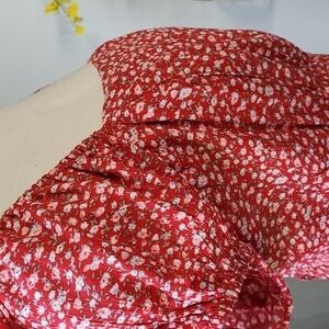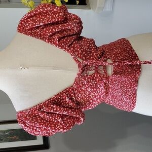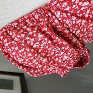SIM & SAM, summer top, red floral design medium Off the shoulders Elastic bottom