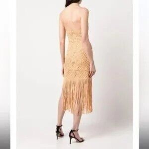 SIMKHAI Alisa Alisa Embroidered amp Fringe Trim Dress in Rattan SZ 2