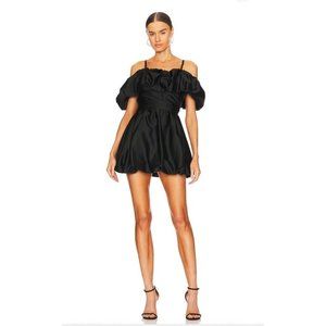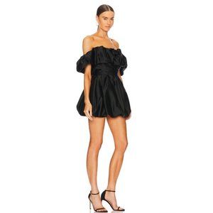 SIMKHAI Astoria Off Shoulder Mini Dress Black Satin 4 NWT $745