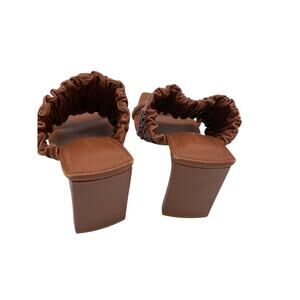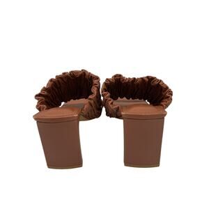 SIMKHAI Felix Elastic Block-Heel Mules Size 6 US / 36 EU. Crafted in a versatile brown leather finish, these mules feature a comfortable elasticized strap for a secure fit and a sturdy block heel that adds height without sacrificing comfort. Condition notes: Stretching or Deformation