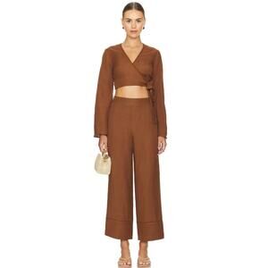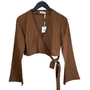 SIMKHAI Hailey Wrap Crop Crochet Trim Top Small