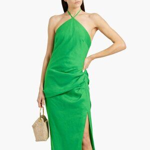 Gorgeous SIMKHAI Hansel draped linen halter neck maxi dress with side split and concealed hook and zip fastening at side. Fully lined. Mid-weight, 100% linen non-stretchy fabric. Easy to dress up or down. Excellent condition. New with tags.